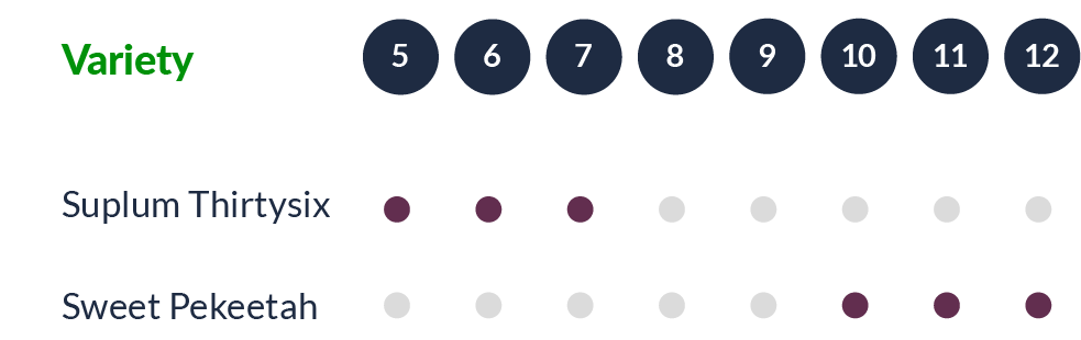Harvested in late October in the north and mid-November in the central region. This early variety boasts good productivity, good size, and flavor.